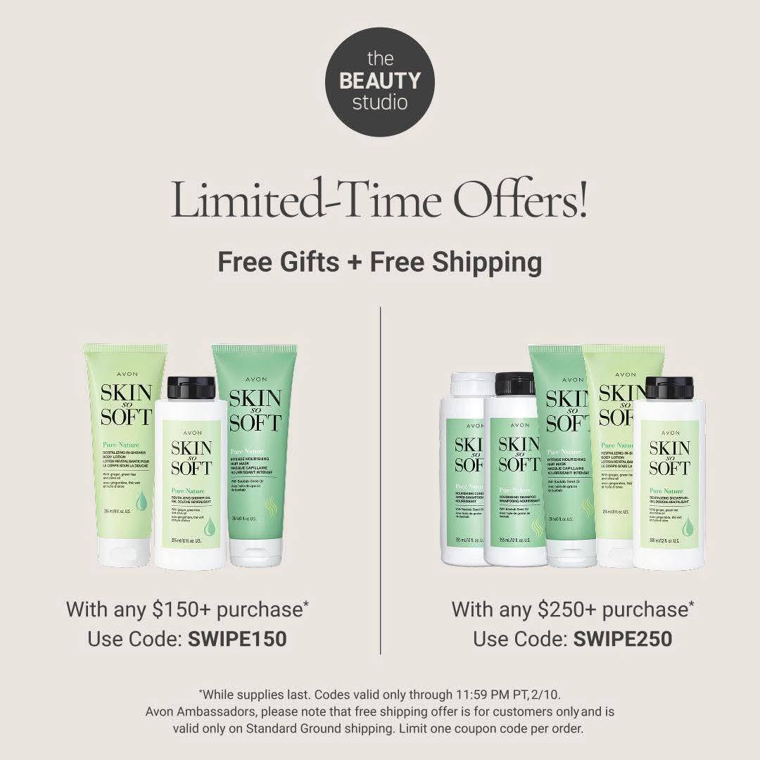 Any Size Online AVON Order Ships FREE!  Limited Time Only!